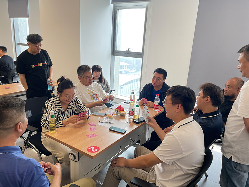“楚河對漢界、摜蛋斗地主”。棋牌比賽中,大家“切磋棋藝,以牌會友”,個個沉著冷靜,思路敏捷。在楚河漢界之間縱橫車馬、調(diào)兵遣將;在方寸撲克之中,聚精會神,沉著應戰(zhàn),憑借默契的配合,讓“戰(zhàn)局”高潮迭起。