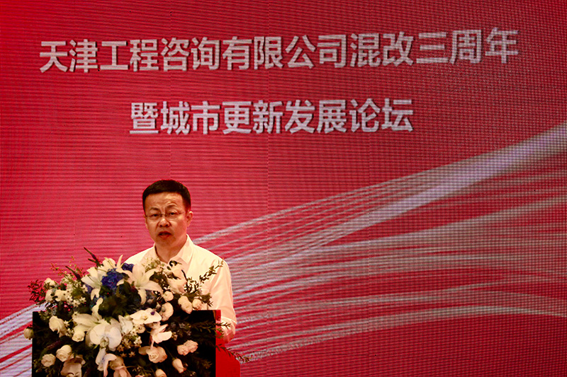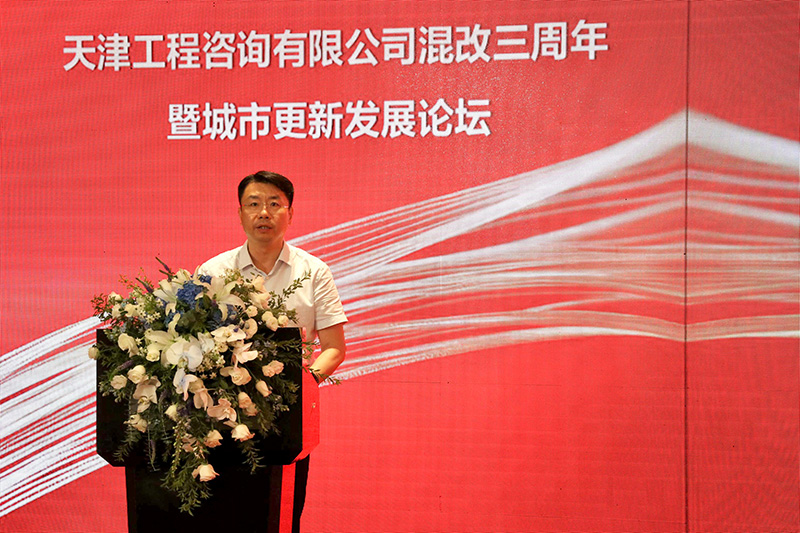 河西區(qū)委常委、區(qū)委統(tǒng)戰(zhàn)部部長、常務副區(qū)長崔振平致辭。代表河西區(qū),對城市更新論壇開幕和天津咨詢混改三周年表示熱烈祝賀!對各位領(lǐng)導、各位嘉賓一直以來給予河西發(fā)展的關(guān)心、支持表示衷心感謝!天津咨詢作為河西區(qū)內(nèi)重點企業(yè),自混改以來,充分發(fā)揮自身在城市建設(shè)、管理和運行服務領(lǐng)域的突出優(yōu)勢,扎根河西、深耕發(fā)展,先后參與天津設(shè)計之都核心區(qū)柳林街區(qū)城市更新、老舊小區(qū)改造、市容環(huán)境整治等多個重大項目,在全市軌道交通、基礎(chǔ)設(shè)施、城市綠化等領(lǐng)域發(fā)揮了重要作用,成為助推全市經(jīng)濟社會高質(zhì)量發(fā)展的重要力量。希望一如既往地關(guān)心支持河西,分享更多城市更新和城市建設(shè)管理方面的真知灼見,提供更多全國各地的好經(jīng)驗、好做法,共同為推動全市高質(zhì)量發(fā)展出力。我們將秉持“無事不擾、有求必應”理念,持續(xù)優(yōu)化營商環(huán)境,為包括天津咨詢在內(nèi)的廣大區(qū)內(nèi)企業(yè)發(fā)展保駕護航。
