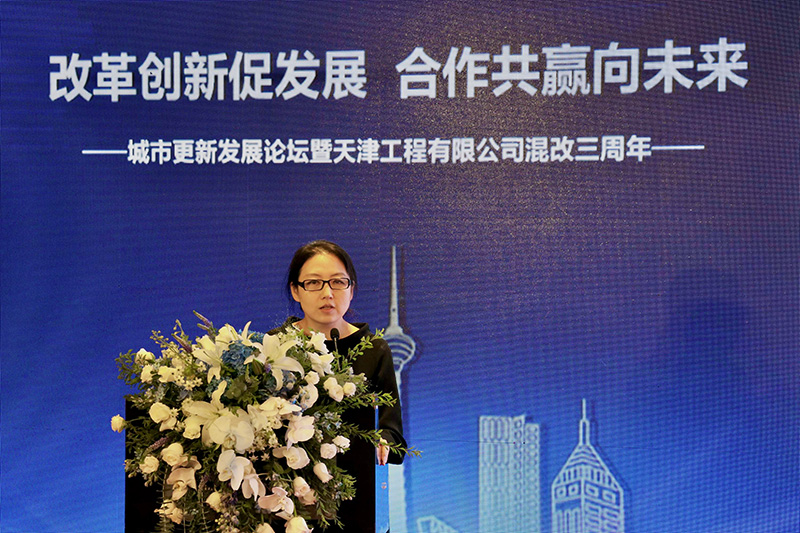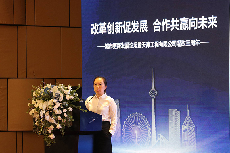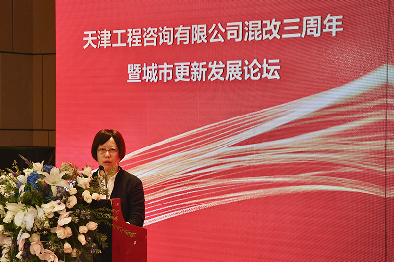 天津市國資委改革處副處長袁薔致辭。代表市國資委向天津咨詢混改三周年表示祝賀,也向關(guān)心和支持天津國資國企改革發(fā)展的各界朋友表示感謝。天津咨詢混改三年引進了先進的管理理念和經(jīng)營機制,實現(xiàn)了國有資產(chǎn)的保值增值,扎根天津、服務天津,加深了津滬兩地國資國企之間的合作與共贏。希望天津咨詢保持向好發(fā)展。不斷拓寬經(jīng)營思路,健全經(jīng)營機制,努力挖掘自身優(yōu)勢,提高企業(yè)核心競爭力,為混改后天津國資參股企業(yè)保持更好更快發(fā)展樹立典型。希望天津咨詢服務天津發(fā)展。主動融入和服務“十項行動”,持續(xù)推進“三新”“三量”工作,抓住有利時機,充分發(fā)揮在城市更新、資產(chǎn)盤活等方面的咨詢技術(shù)優(yōu)勢,為天津的城市建設(shè)和經(jīng)濟發(fā)展“添秤”。希望天津咨詢發(fā)揮紐帶作用。繼續(xù)穩(wěn)步推進改革,將上海國企的先進理念引入天津,進一步發(fā)揮好上海國資和天津國資之間的紐帶作用,為推動雙方互利共贏做出積極貢獻。