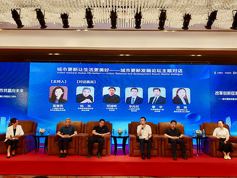 城市更新發(fā)展論壇圍繞城市更新政策引領(lǐng)、新技術(shù)應用等領(lǐng)域,共同探討城市更新建設(shè)的發(fā)展新理念、新模式、新技術(shù)。上海建科集團黨委委員、副總裁李向民、天津城市規(guī)劃總院城市更新分院院長張娜、天津咨詢副總經(jīng)理、總工程師岳琳分別就《城市更新之上海建科研究與實踐》《實施城市更新行動,共劃城市發(fā)展轉(zhuǎn)型》《天津市城市更新產(chǎn)業(yè)策劃及投融資平衡研究》作專題演講。圍繞城市更新讓生活更美好主題,上海建科集團副總裁李向民、天津城市規(guī)劃總院副總經(jīng)理楊軍、天津房鑒設(shè)計院總經(jīng)理曹宇、天津城市更新發(fā)展公司總經(jīng)理鄭建峰、天津咨詢副總經(jīng)理、總工程師岳琳進行“主題對話”。上海建科集團市場發(fā)展部總經(jīng)理葛曹燕主持城市更新發(fā)展論壇。
