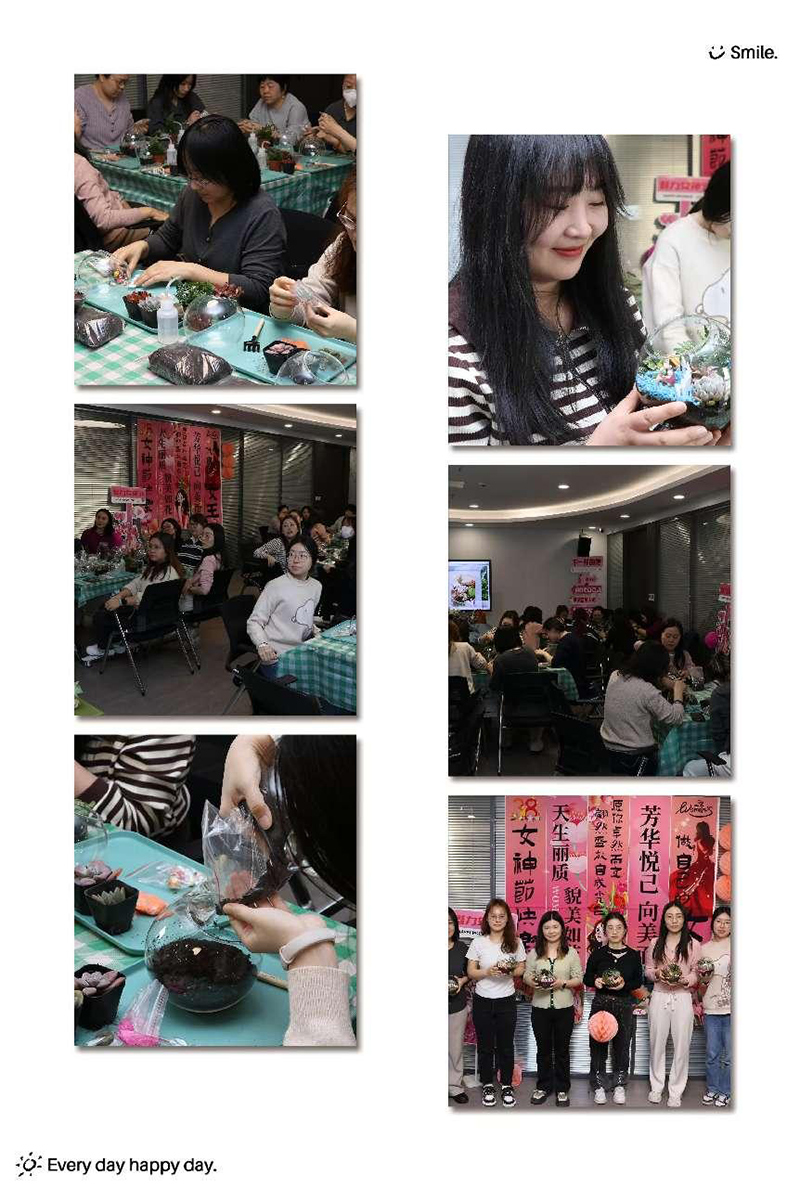 宏亞公司工會(huì)組織了“柔光萬丈,自在生長”微景觀DIY主題活動(dòng),女職工們用靈巧的雙手將方寸玻璃瓶化作詩意天地,有人打造出“苔痕上階綠”的古典庭院,有人構(gòu)思出“小橋流水人家”的田園牧歌,活動(dòng)現(xiàn)場歡聲笑語不斷,大家在綠意盎然的創(chuàng)意世界中感受春日美好,共度溫馨時(shí)光。