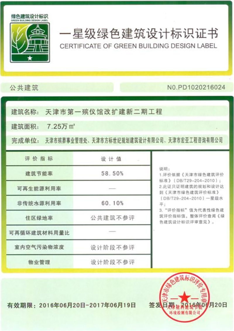 坐落在天津市北辰區(qū)鐵東路(第一殯儀館院內(nèi))。總投資約3.6億元,總建筑面積7.3萬平米,地上兩層,地下一層,其中:地上5.3萬平米,地下2萬平米,框架結(jié)構(gòu),屬于天津市民心工程。該項(xiàng)目于2016年6月通過專家會(huì)評(píng)審,獲得國(guó)家一星級(jí)綠色建筑設(shè)計(jì)標(biāo)識(shí)。