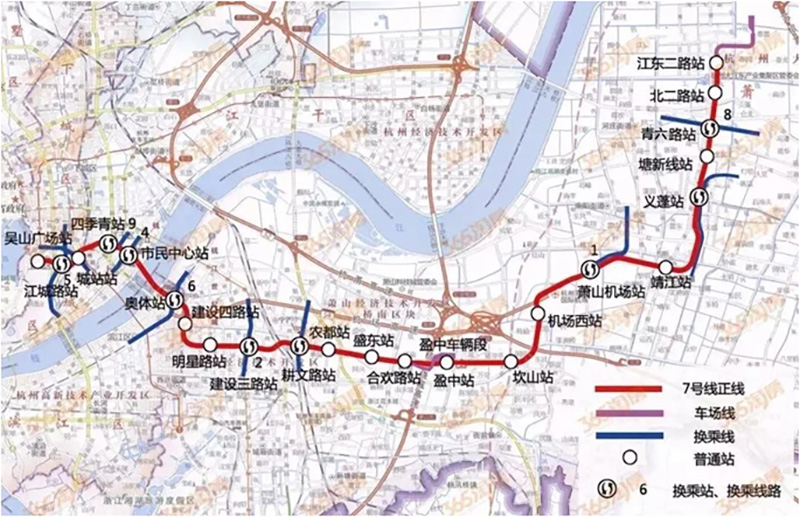項目建設規模7號線工程自吳山廣場站至江東二路站,全長47.481公里,全部為地下線,共設車站23座,新建江東三路停車場1座,盈中車輛段1座,總投資約305.297億元;建設地址位于杭州市,計劃于2021年建成。